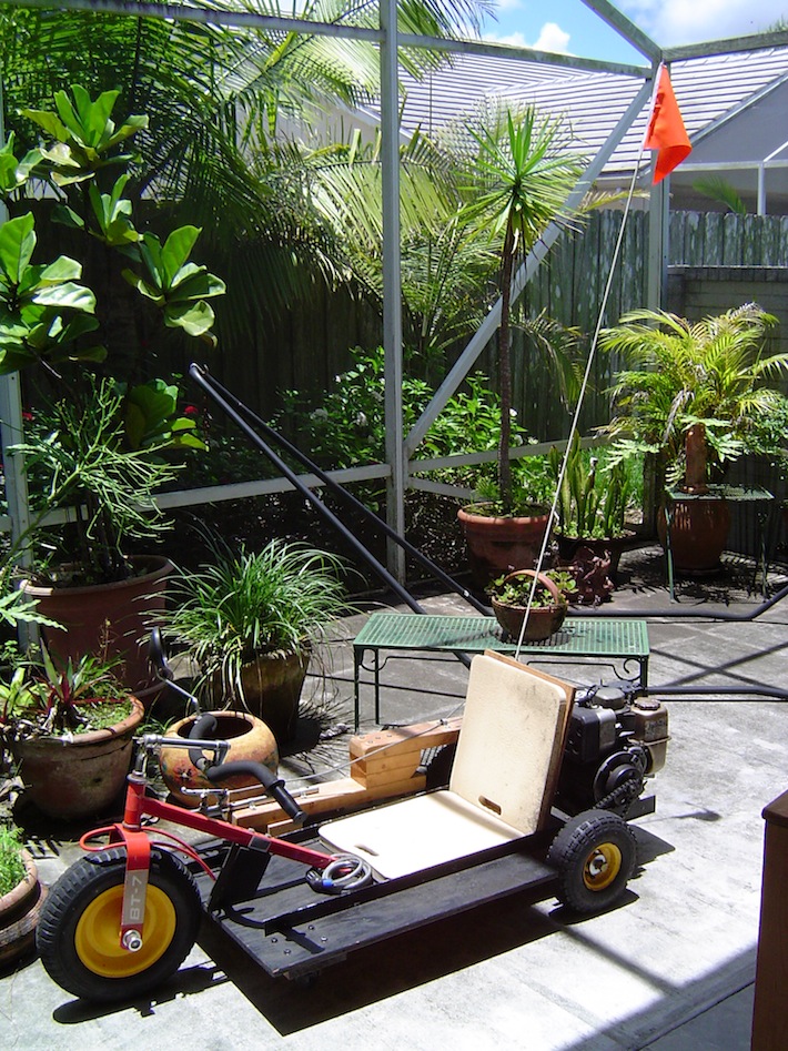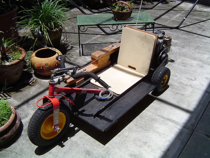 As a young teenager, before I studied engineering at MIT and before I was old enough to drive, I was already interested in design, fabrication, and motor vehicles. My first such project was a 3-wheeled go-kart that used a 3 horsepower engine from a pressure washer, a modified children’s tricycle, and a variety of hardware store finds. This simple vehicle was capable of speeds up to 55 km/hr (~35 miles/hr).